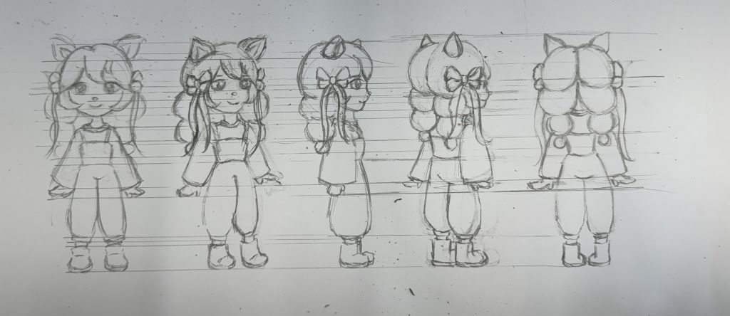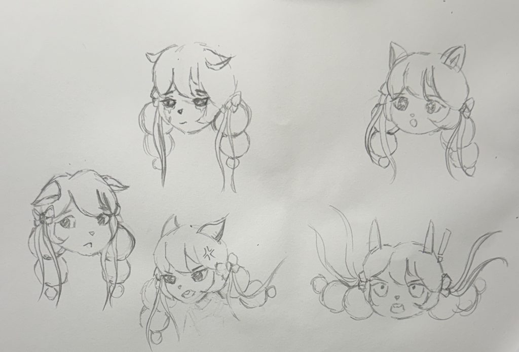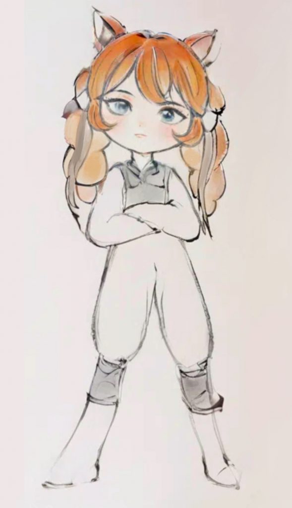 Hand drawn scanned version(Watercolor)➕Apply Procreate for processing in the later stageCharacter Design Sketch Hand drawn scanned version(Watercolor)➕Apply Procreate for processing in the later stageFinal draftDesign process:Pencil line draft(Character Five Views and Five Emojis Design)