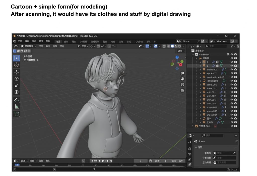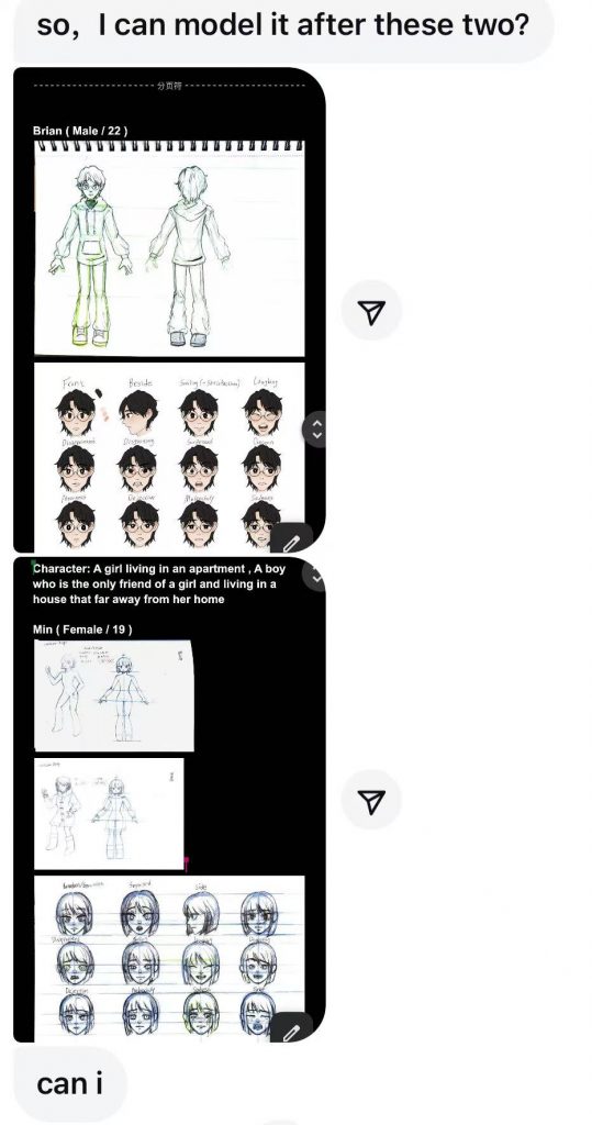What’s particularly regretful is that in our finally – determined storyboard, our male lead doesn’t show his face at all. So the modeling of this male lead isn’t reflected in the subsequent 3D animation. Thus, you probably won’t see this male lead in our animation.