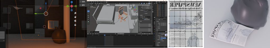 I received the rendered animation videos from my team members and started my video editing work. First, I integrated all the videos, began to make some deletions, and performed basic processing such as video fast – forward and slow – motion. After the processing was almost done, I started to look for sound effect materials online. I searched many websites, such as Bilibili. The sound effects I found include the howling wind in heavy snow, the sound of snowfall, characters walking in the snow, hitting the window glass, typing on computer keyboards, and windows sliding, etc.