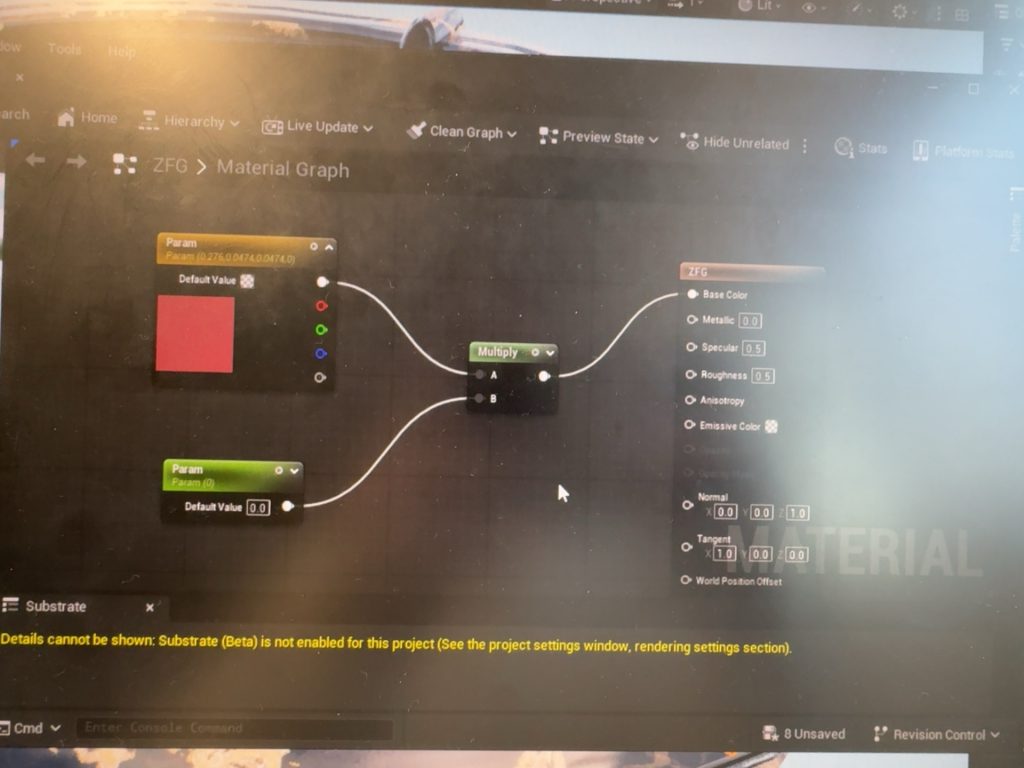 When I needed to create a self-illuminating material instance in Unreal Engine 5 (UE5), I encountered an issue. It turned out that the output of the Multiply node was connected to the Base Color port, but for self-illumination, it should be connected to the Emissive Color port instead. So I adjusted the connections, and that fixed the problem.