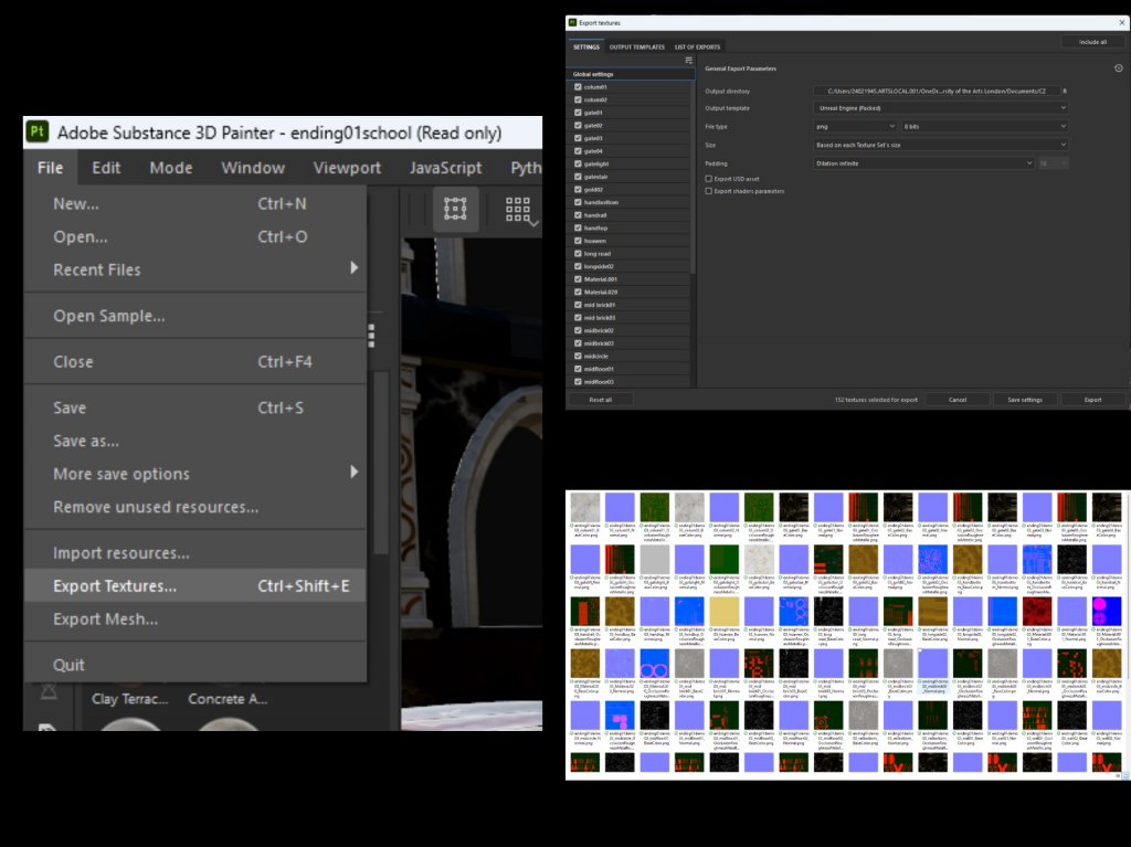 I have exported all the materials from Substance Painter one by one, saved them to my computer’s OneDrive, and named them appropriately so that I can easily match them in Unreal Engine 5 (UE5).