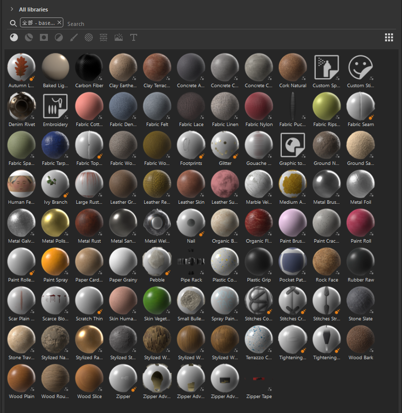 As shown in the figure, this software comes with a large number of material assets built-in.